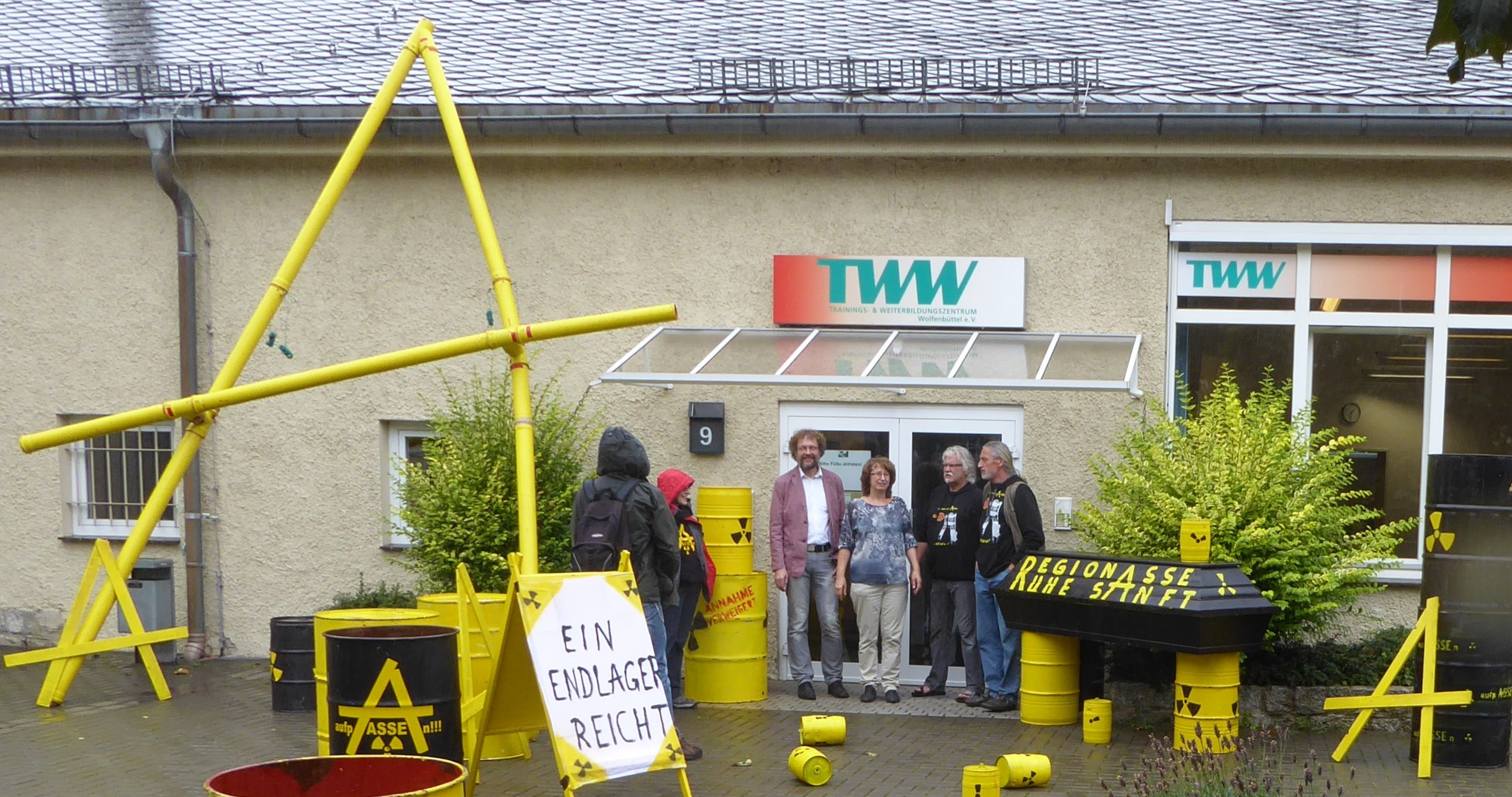 Vor der Sitzung der Asse-II-Begleitgruppe stellen die Bürgerinitiativen ihre Forderungen dar.